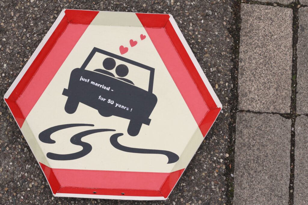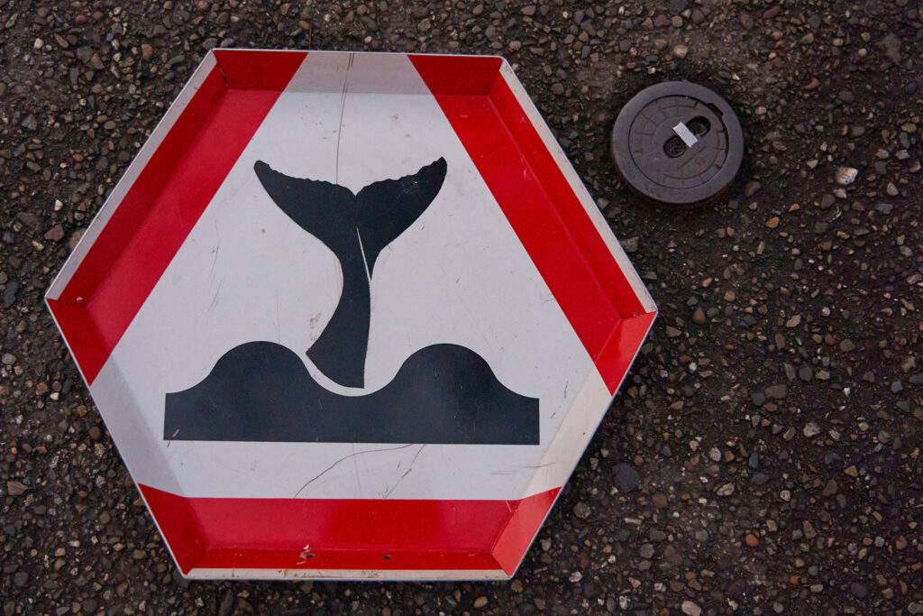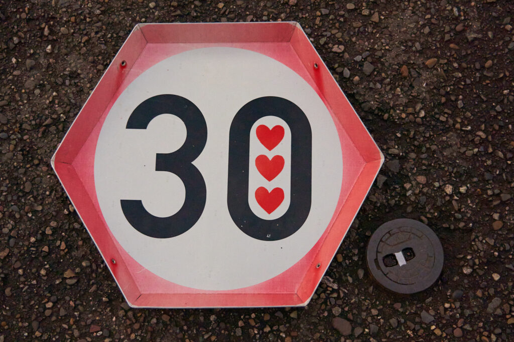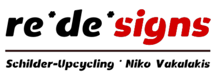 Tabletts aus ausgedienten Verkehrsschildern.